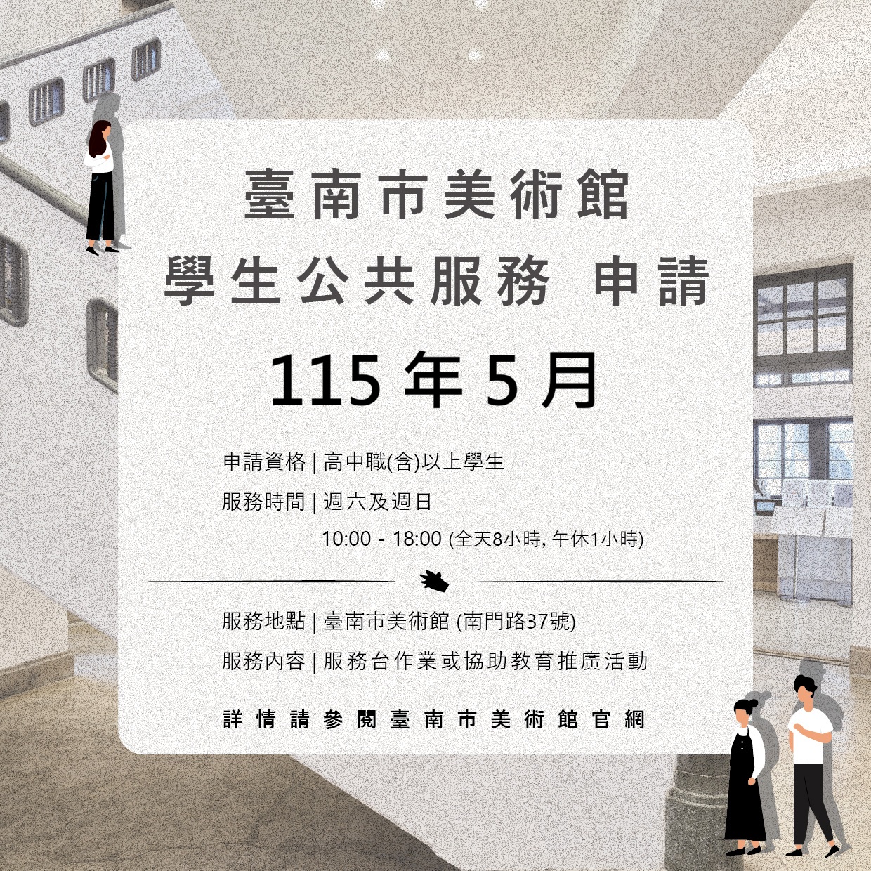 臺南市美術館學生公共服務申請-2026年5月(報名至4月21日截止)