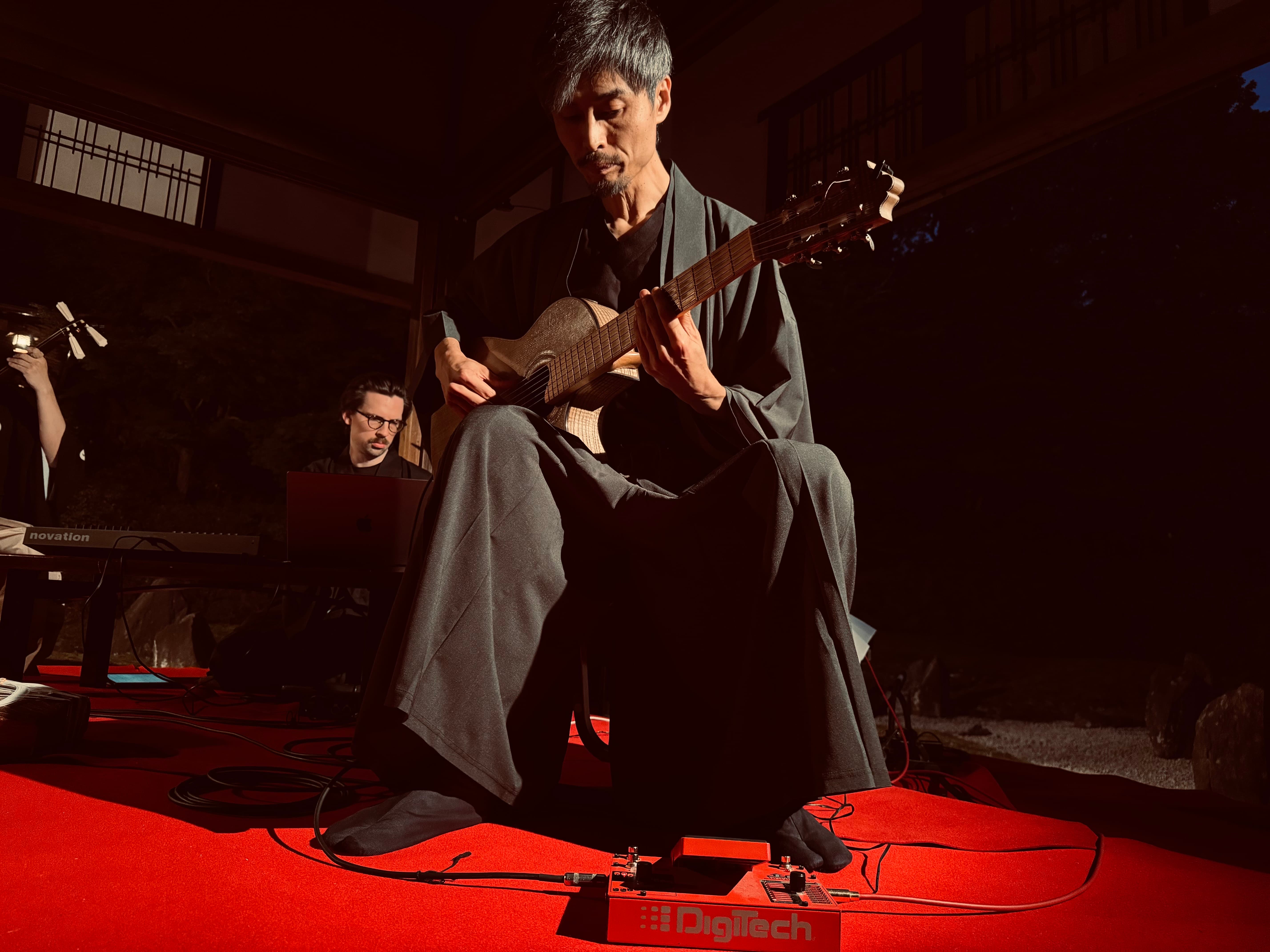 來自日本的渥美幸裕,自十八歲起在東京展開錄音室與吉他手生涯,足跡遍及世界各地。他致力於「邦樂2.0」計畫,將擁有千年以上歷史的日本傳統音樂用吉他重新編曲,賦予現代表達形式並傳遞至世界各地。在此次「靈魂的聲紋」中,他將以跨文化視角觀察臺南府城的古樂脈絡,並在廟埕演出,讓古老儀式的神聖與現代吉他聲響交織,創造出衝突又美妙的音樂現場。